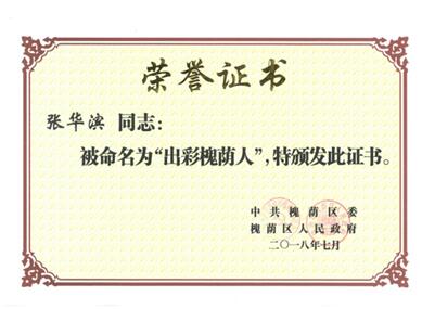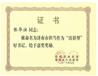 2018年7月张华滨董事长荣获济南市担当作为“出彩型”好书记、“出彩槐荫人”。
